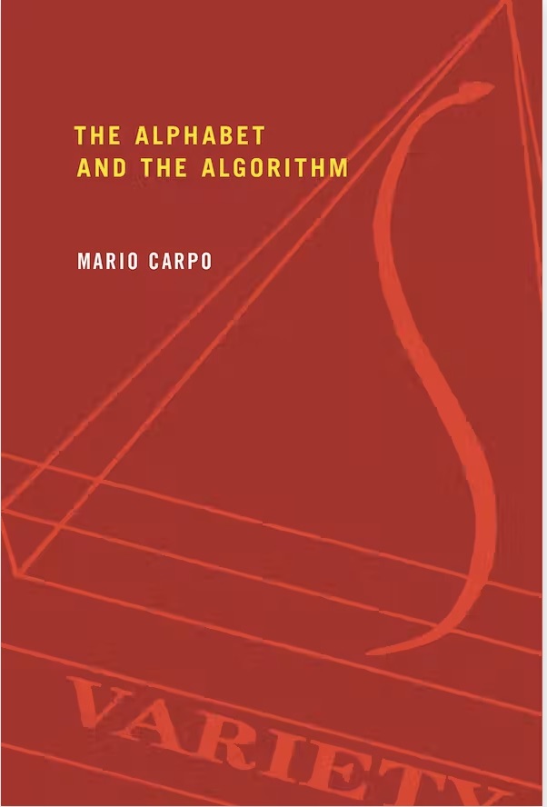 Publication History: German translation, Alphabet und Algorithmus: Wie das Digitale die Architektur herausfordert. Bielefeld: Transcript Verlag, 2012. Japanese translation, Tokyo: Kajima Institute Publishing, 2014 (with a new preface, pp. 2-6). Partial Spanish translation in Mario Carpo, El Ascenso: el culto posmoderno a los monumentos. Santiago of Chile: Ediciones ARQ, 2020 (with a new preface, pp. 6-14).